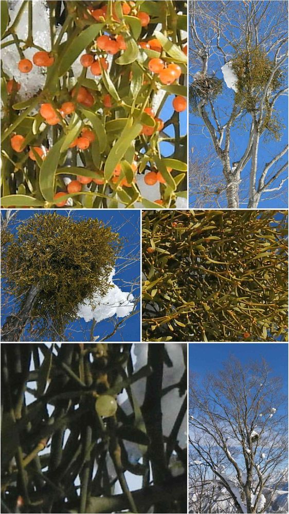下段は良く見かけるマスカット色の実が付いたヤドリギです。