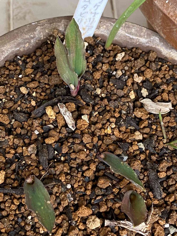 画面右側、球根を購入した際にひとつだけ違う種類の球根が混ざっていたみたいで、ラケナリアコンタミナータみたいな葉っぱが出ているけれど、何なのかは謎…なので、謎太郎くんと名付けてみました。