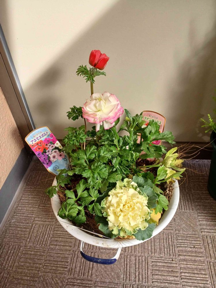 びーちゃん*(・×・)*さんのラナンキュラス,ハボタン F1ラッフルホワイト,ベランダガーデニングの投稿画像