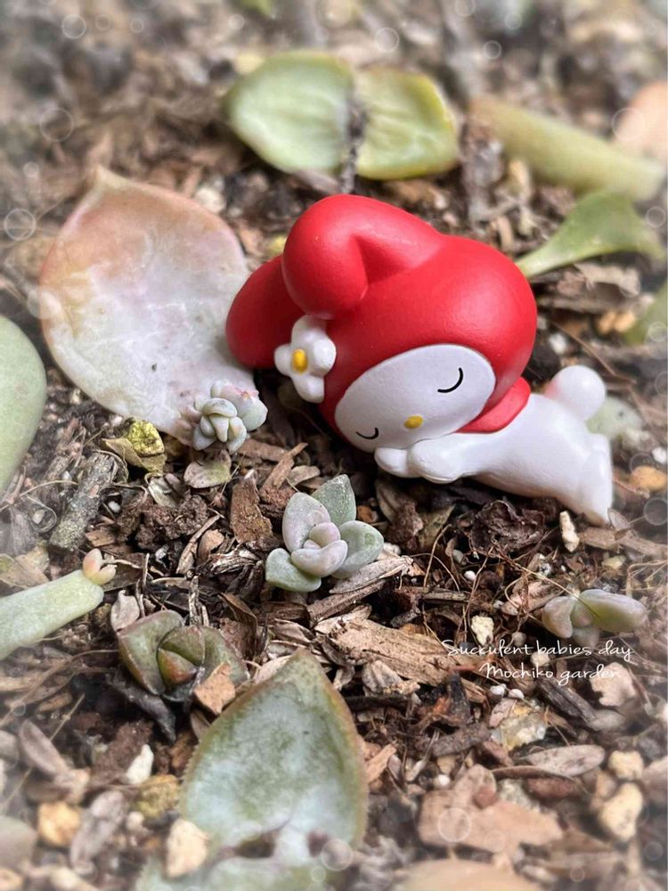 可愛い多肉ベイビーちゃんの横で安心してスヤスヤ〜なマイメロちゃん❤️可愛いすぎます😍