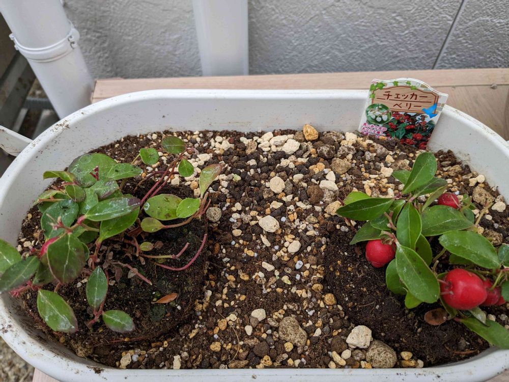 こんばんわ。チェッカーベリーです。這性なのでちょっと蒸れが心配ですけど。来シーズンに向けて育てます。赤い実もかわいいですけど定期的に取り除きながら楽しみたいです。