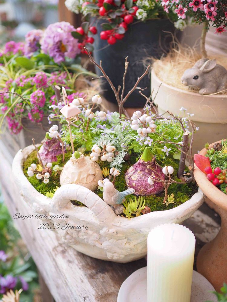 北欧では冬の間に球根植物を苔や枝はたまたキャンドルと共に寄せ飾りその成長を楽しみながら春を待つ❄