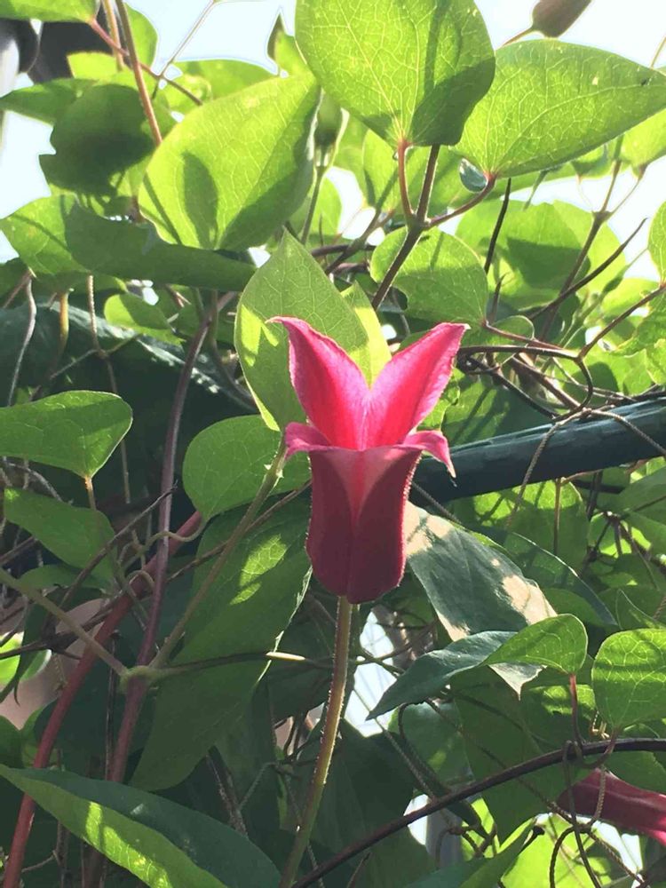 前回の クレマチスとは 色が似ているけど 型は ほっそりしているのですね。