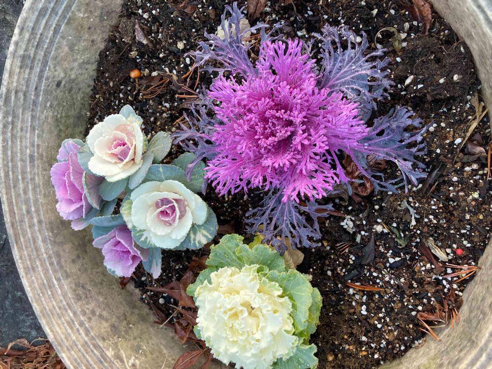 いろんな葉牡丹の寄せ植え可愛いですね。
