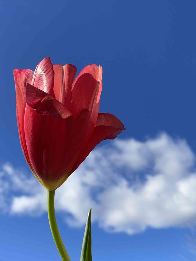 昨日はリフレッシュの休み、青いお空に赤いチューリップ🌷のpic、爽やかでステキ❣️私ねーチューリップの花が大好き❣️