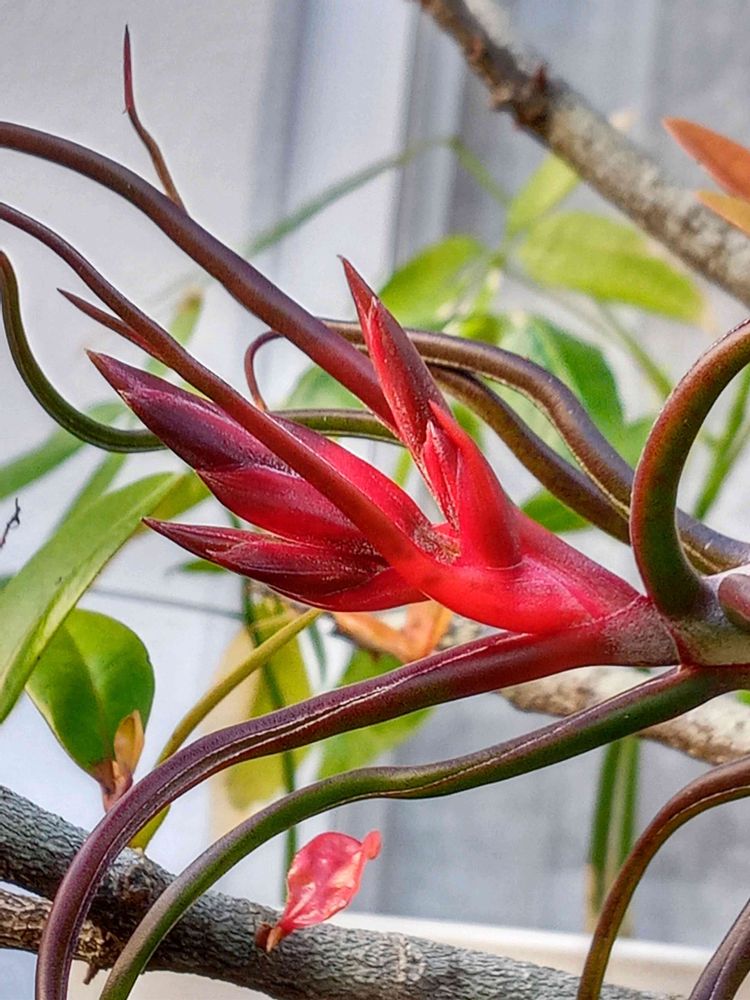 エアープランツ、ブルボーサ🌿の花序が真っ赤🔴になってシュワッチ🚀