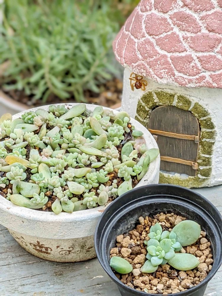 プロリフィカの葉挿し、パラパラした鉢の中でちっちゃい子がいっぱいで、可愛いです〜(∩ˊ꒳ˋ∩)💖