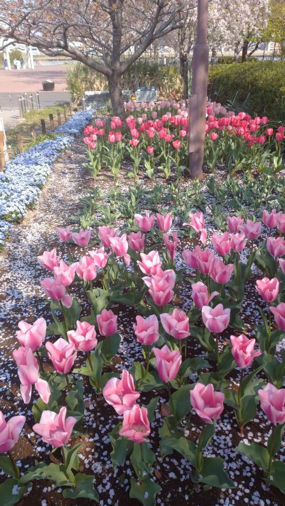 約一年ぶりで見る素晴らしいチューリップ🌷花壇🌷 今日のお花ですね🌷