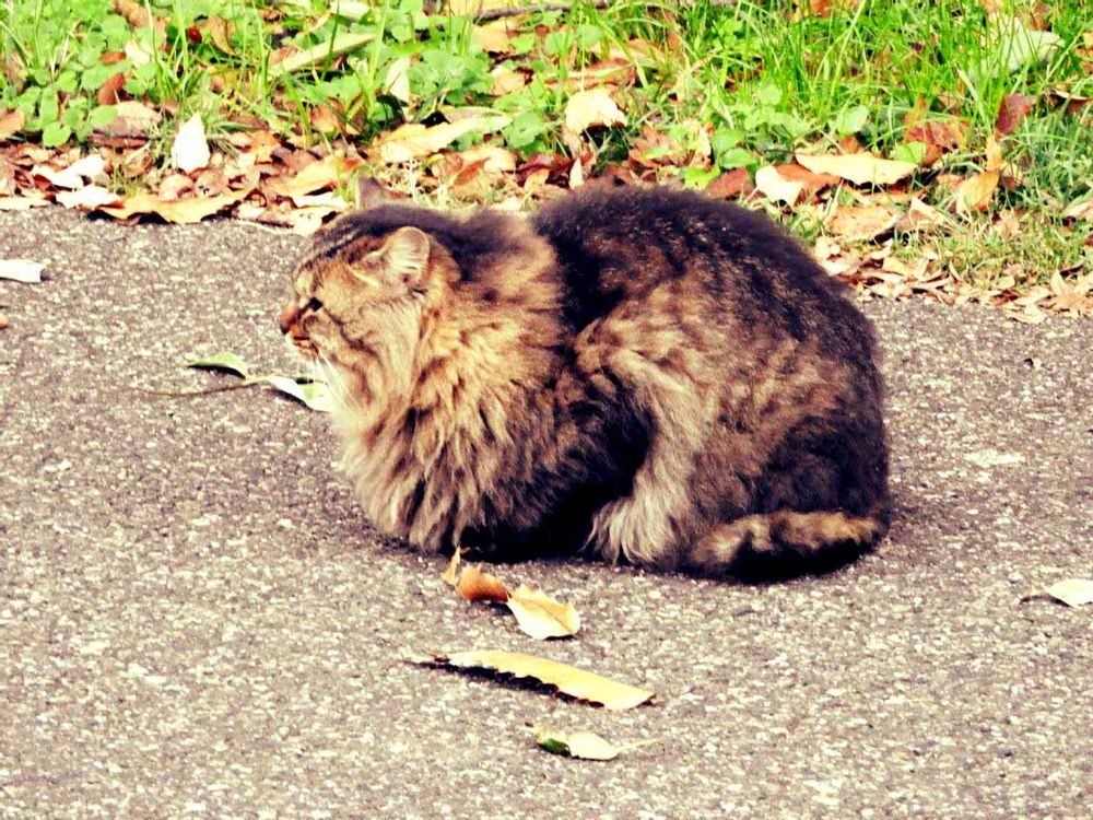 🦆を捕まえて、食事にしています。お腹を引きずって歩いています。