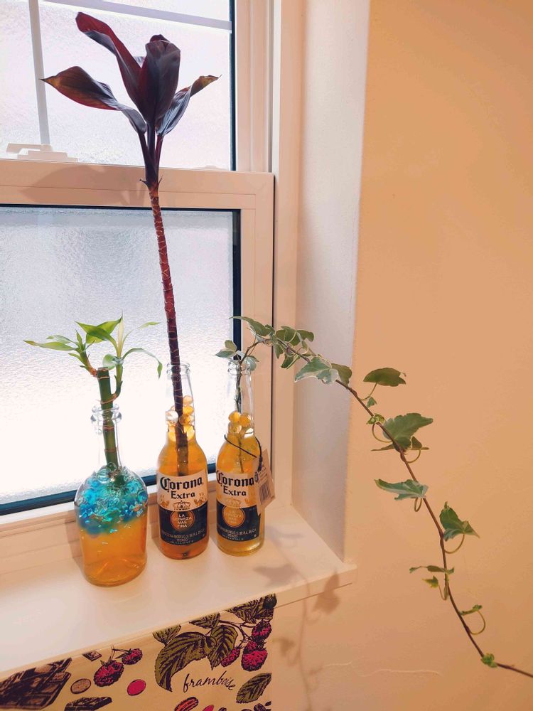 切り花のドラセナとアイビーを挿して2ヶ月…発根してくれたのでこのまま育ててみます✨