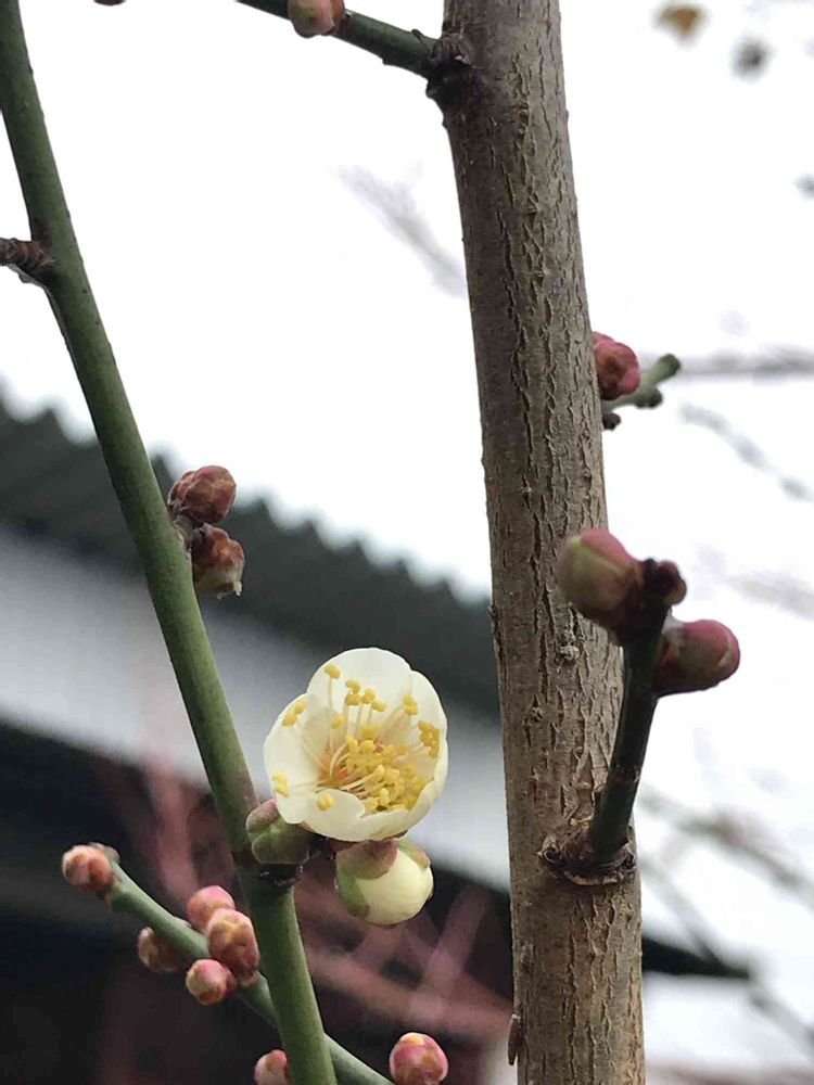 午後になり小雨が止んだので裏庭を歩いてみたら、もう梅が一輪咲いていました。う〜〜ん、一年振りの梅の香り、大好きです🥰🥰🥰👍✨✨✨