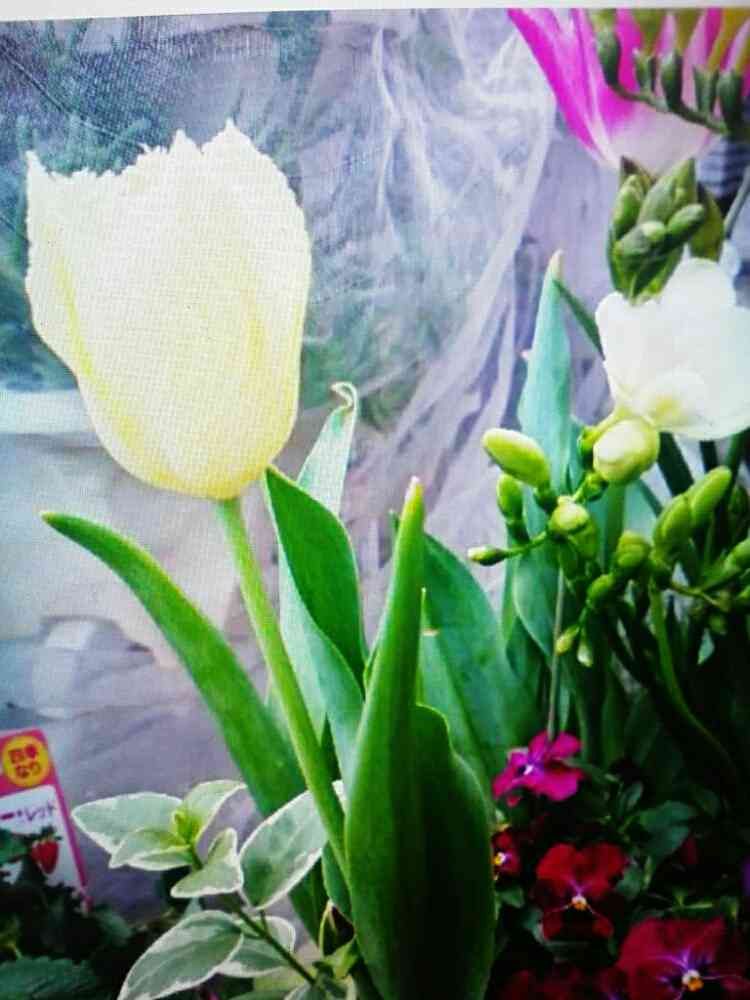過去撮影'21.4/2 黄色のチューリップとピンク色フリージア*白色