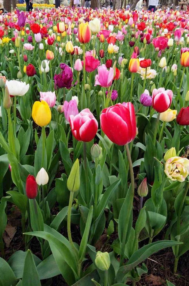 チューリップって色ごとに区分けして植えられてること多いですけど、こんな風にとりどりの色が植えられてるの可愛いですね💕