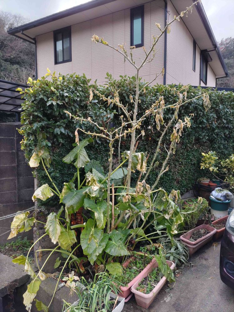 11、12日と2日連続で強い霜が降りたのでエンゼルトランペットとクワズイモが一気にチリチリに・・・
