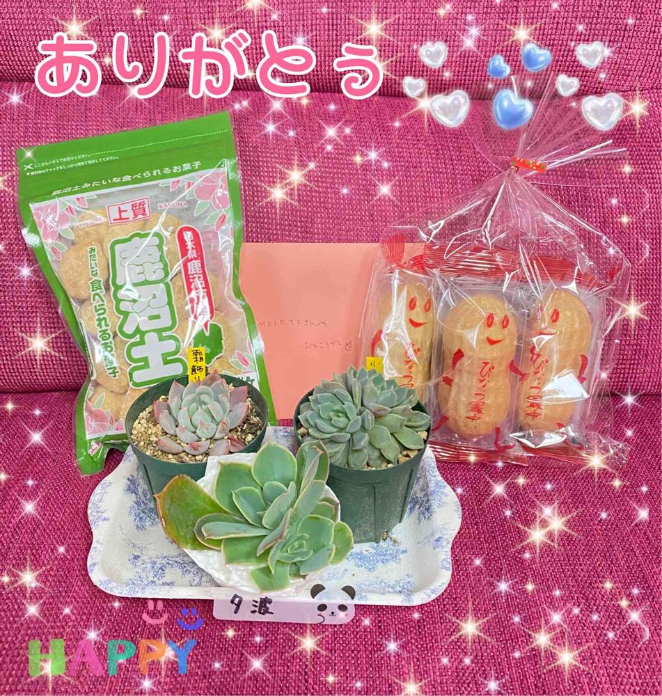 可愛く飾ってくれてありがとうございます😁お礼のお菓子は鹿沼土しか思い浮かばなかったです🤭