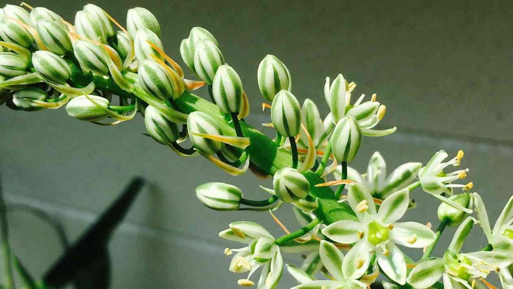 このグリーンストライプのお花、球根系多肉のお花みたい✨