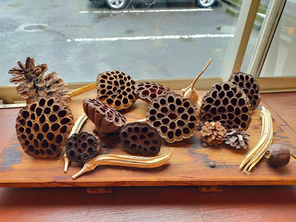 蓮の美しい花と、シャワーノズルのような花後の姿を