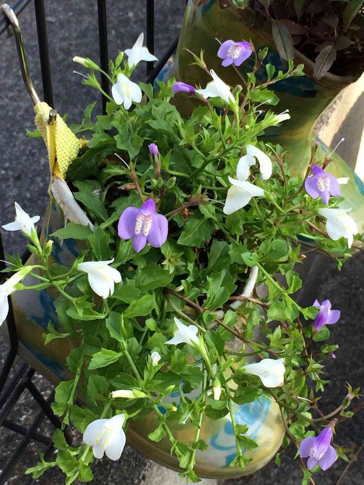 ご近所さんからいただいたお花を、ぼろぼろになった子供のレインブーツに植えてみました。