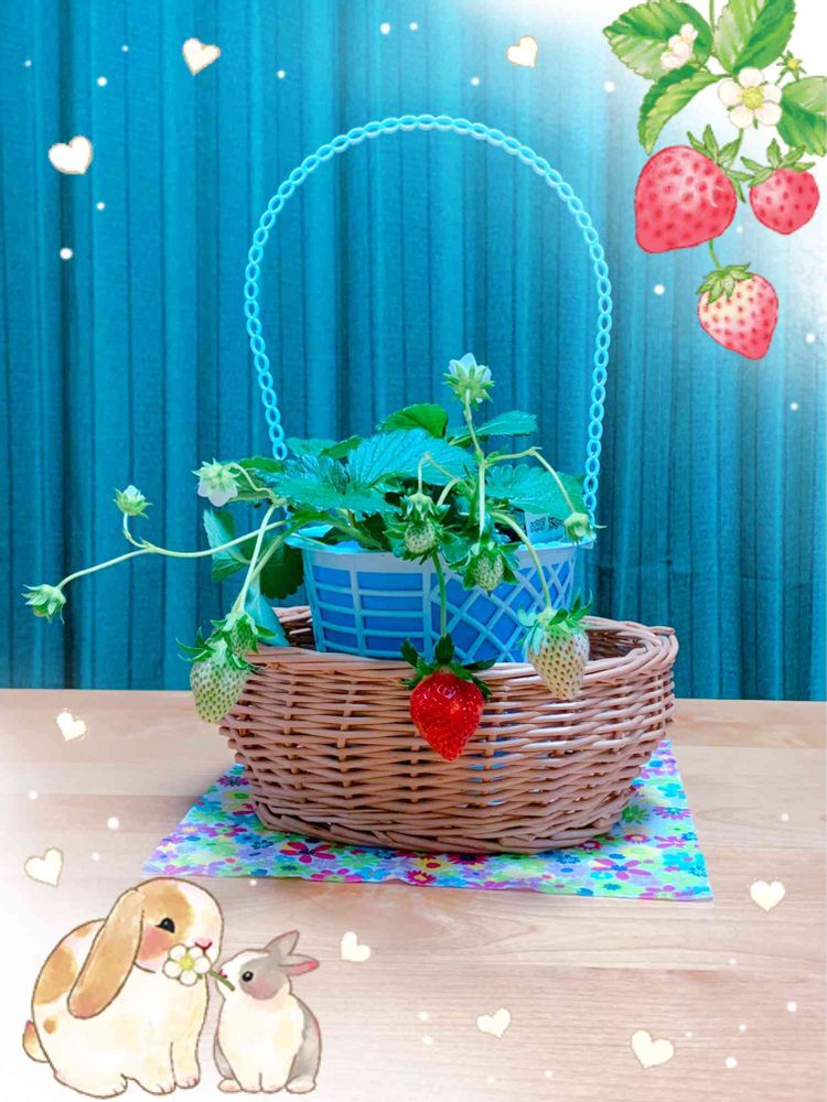苺の苗をいただきました🍓1つはもう食べられそう😊白いお花も可愛い💕