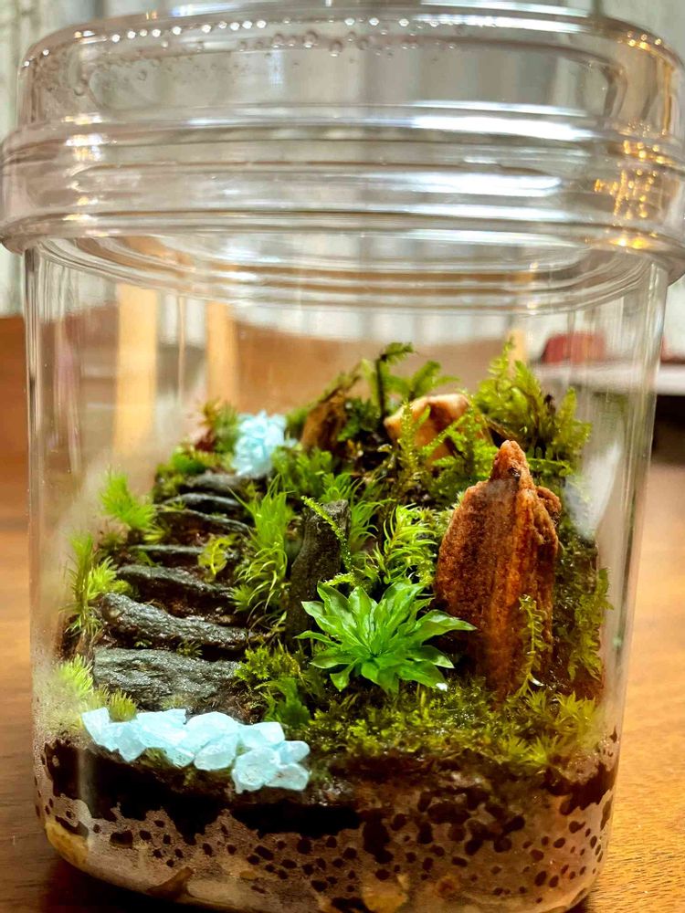 Moss light はデザインも良くてライトも組み込まれてるので良さそうですよね。テラリウムは苔のみならず、熱帯系の湿度好きな植物も同居させられそうなので、容器のサイズやレイアウトを工夫すれば、手持ちの植物も組み込めるかもしれません。