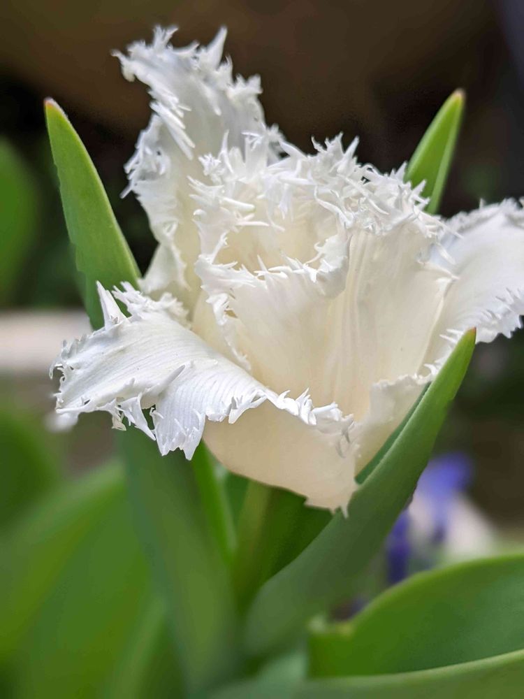 白いチューリップ、素敵ですね🤍私も白に🤍❤️赤いストライプが一本入ったおしゃれさん、咲かせてたけど、去年は芽が出ず〜でした😭