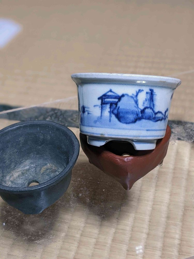 こちらは、ポチッたのでは無く親戚の叔母さんから頂いた盆栽鉢🥰ミニ盆栽を始めた話をしたら「亡くなった義父がやってた。あげるよ!」と、写真の他にも頂きました😆