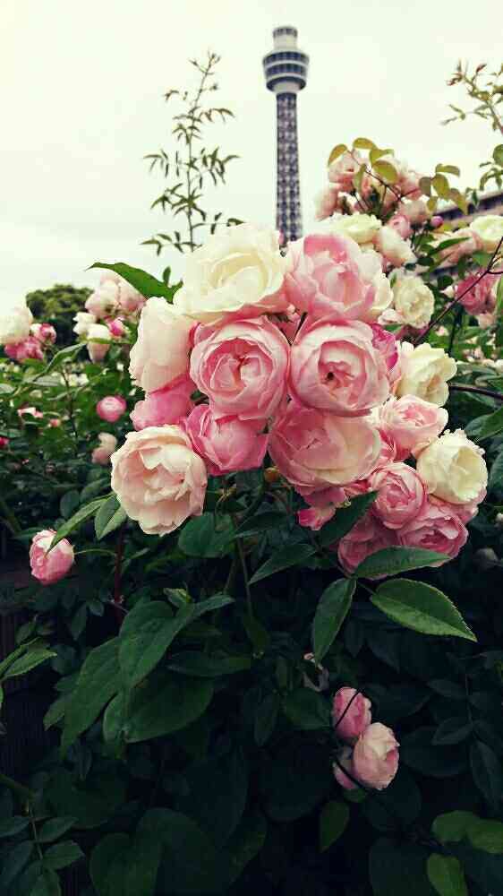 ブーケのようなピンクの薔薇🌹マリンタワーを背景に✨