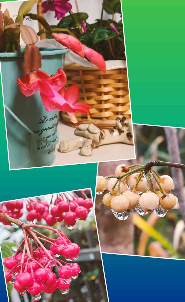 シャコバサボテン,マンリョウ+水滴,スマホで撮影の投稿画像