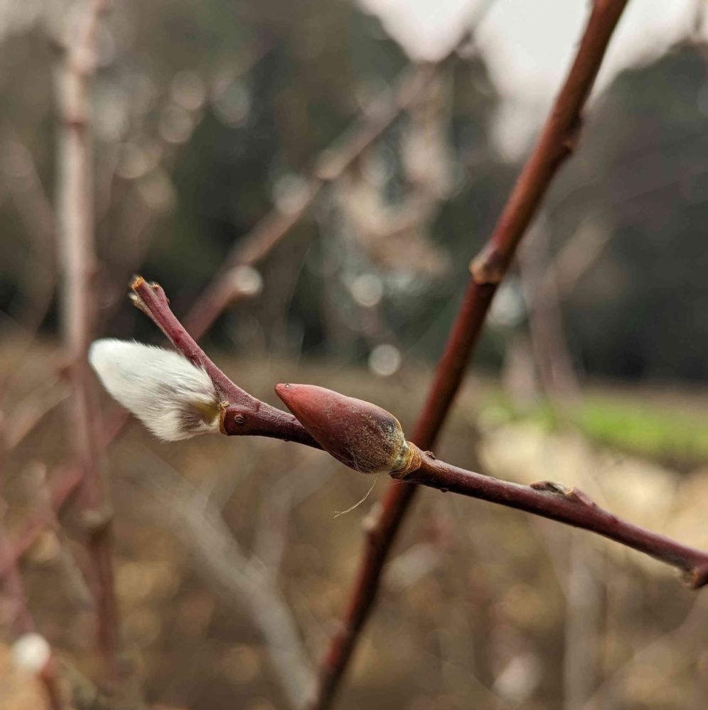 こちらの畑の縁には5本のネコヤナギが植えられていて、たしか雌雄どちらもあったような🙄