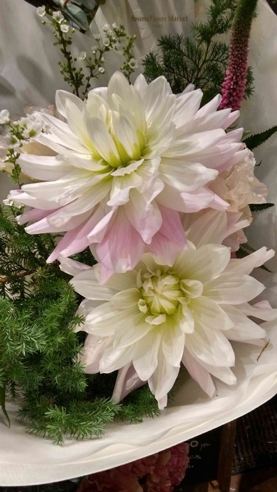 白とピンクのグラデーションに優しさを感じる素敵なダリアですね✨✨🌸