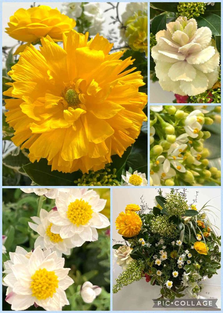 グリーンの中から黄色と白のお花が顔をだして爽やかですね💚🤍💛