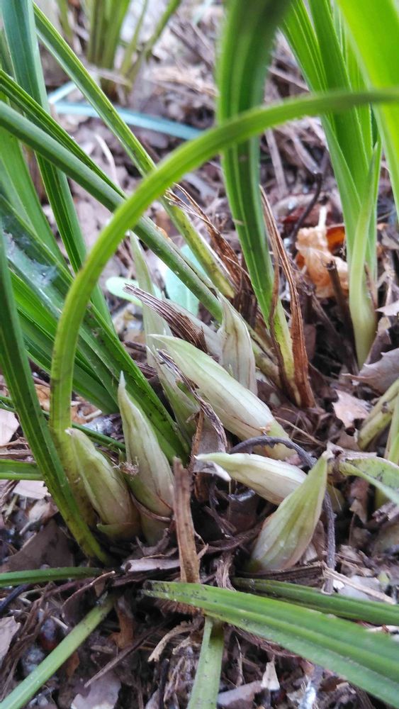 春蘭です🎶。お掃除していたら、花芽が沢山上がっていて、とっても嬉しいー( ´艸`)。庭掃除を頑張ったご褒美ですかー😆💕(大興奮です😁)。