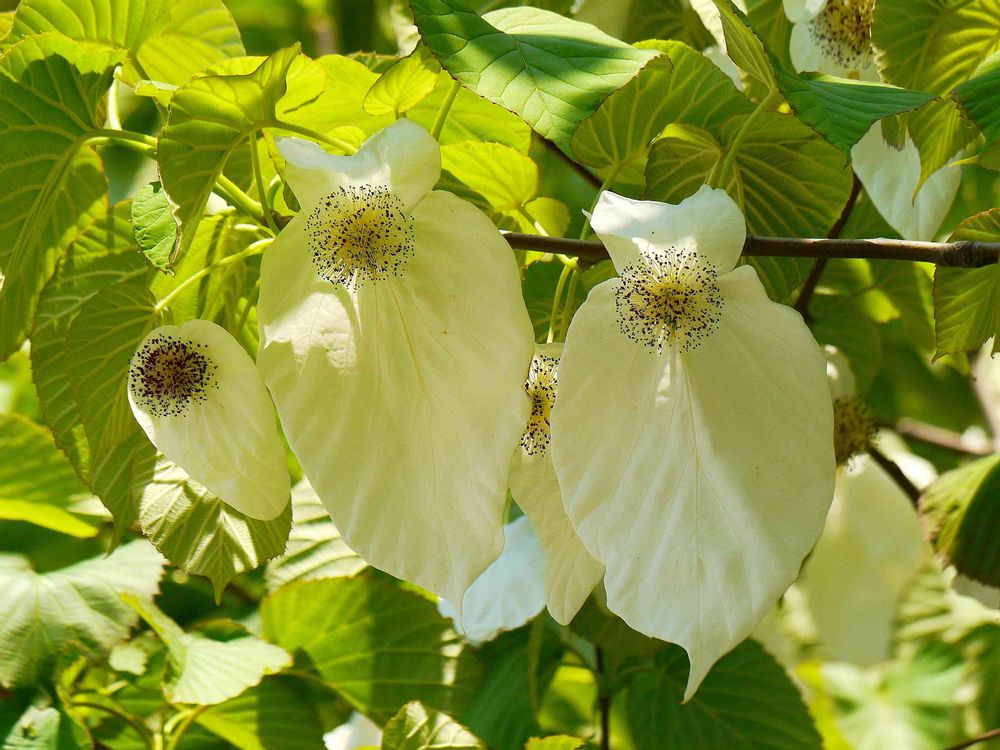 ハンカチの木(別名 幽霊の木)真ん中のポフポフがまぁるい実になる。