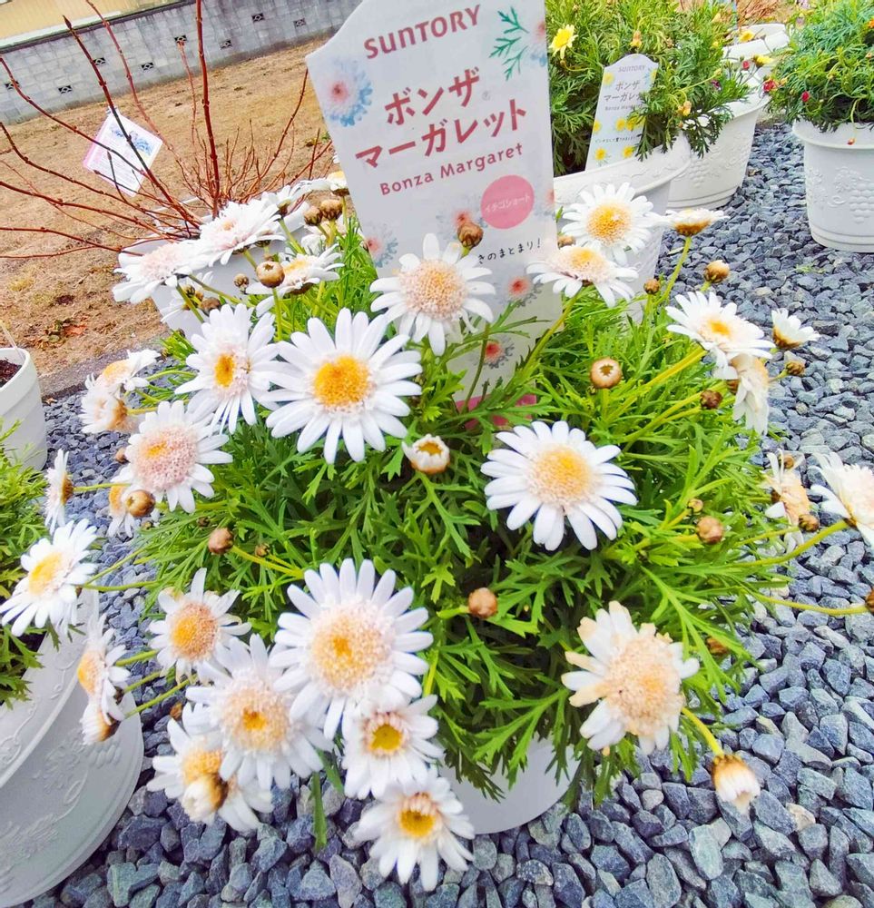 ボンザマーガレットのイチゴショートも寒さに負けずきれいに咲いてくれています☺️🌸