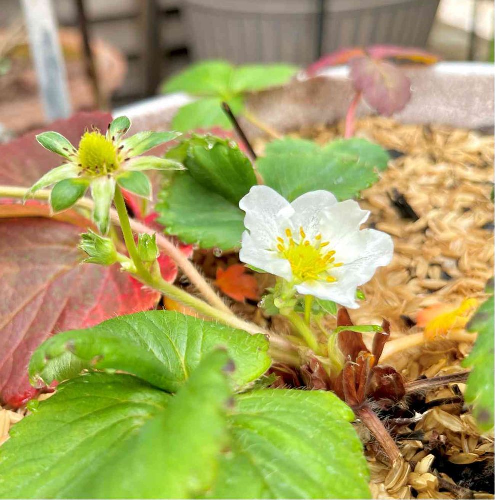 おっ✨✨イチゴの花、咲きましたね~(*˘︶˘*).。.:*♡