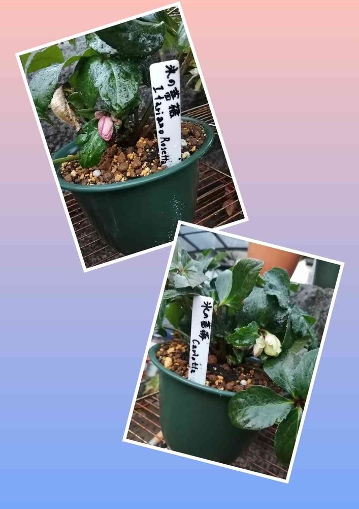 クリスマスローズ、氷の薔薇、イタリアーノシリーズのロゼッタとカルロッタ。蕾は地際に出てきました。花茎がもう少し伸びて欲しいです。