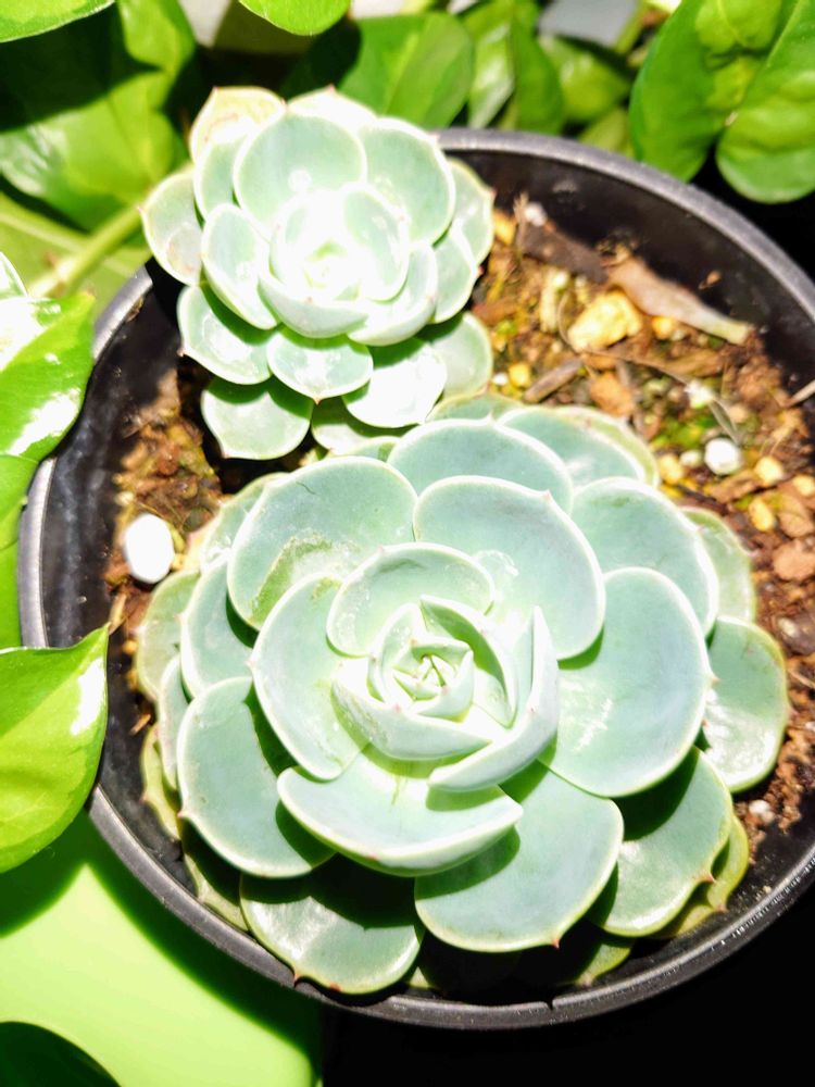 多肉植物を分けて頂いたので 余っていた🪴観葉植物用の土にとりあえず植え付けひと月経ちました!外はしばらくやめて室内で。七福神かな??(。・_・。)