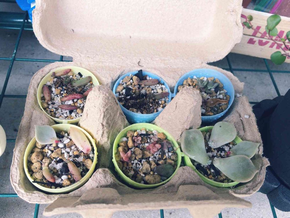 多肉の赤ちゃん達をダイソーのイースターグッズの卵に収めてみました🤓