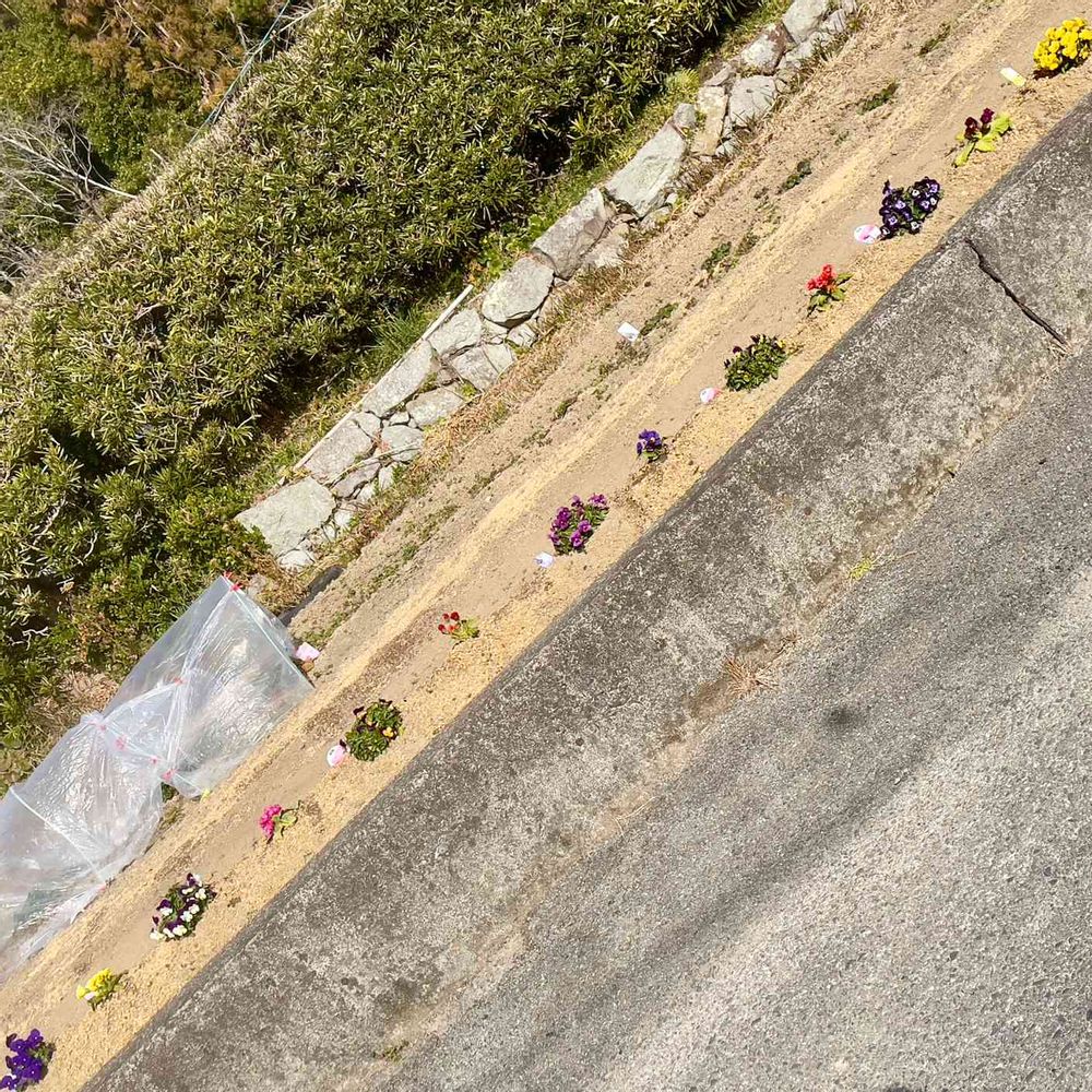 手前は、ビオラとバラ咲きジュリアン🌹
