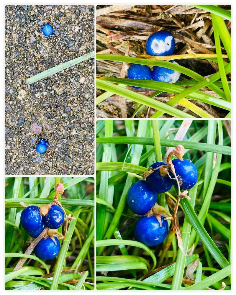ジャノヒゲの実が、さらに鮮やかな青になってました💙✨