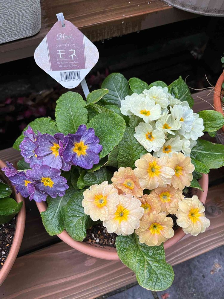 雨にも負けず元気に咲いているプリムラジュリアンのモネさん。