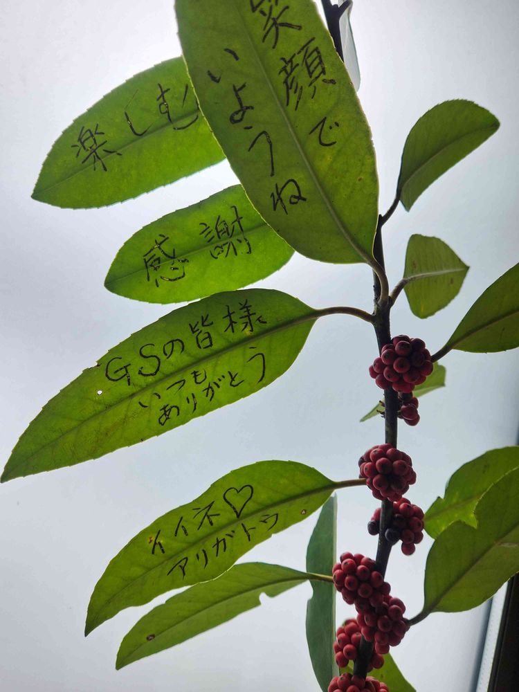 こんにちは☺️葉っぱに書けるとは…🤭ちゃんと字が見えますね🎵⤴️⤴️アイディアですね💚💚💓