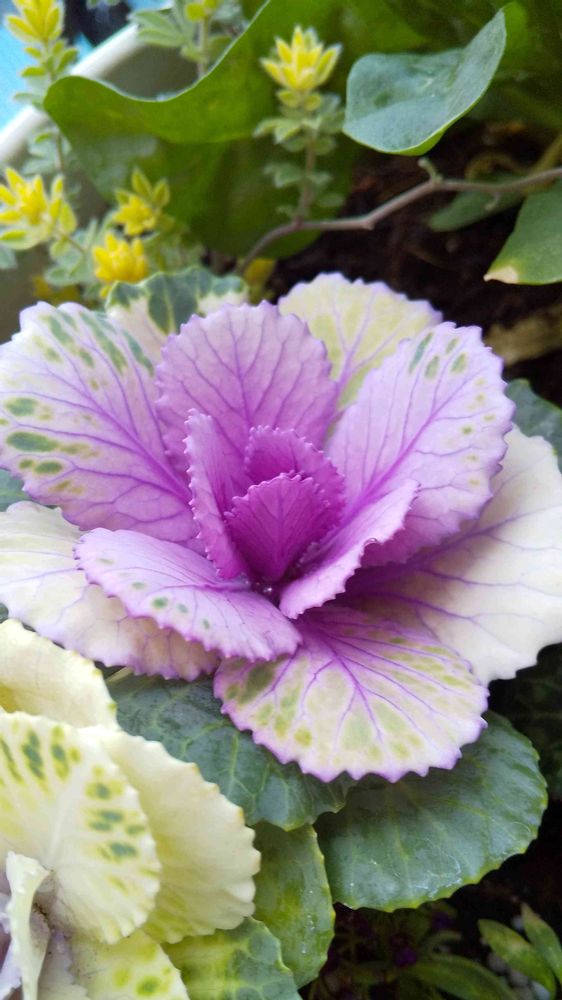 蘭さん、葉牡丹は春から色が抜けて夏には普通の緑になり、秋から紅葉してこの色になるので、今が一番綺麗なんだよ😆👌🎶