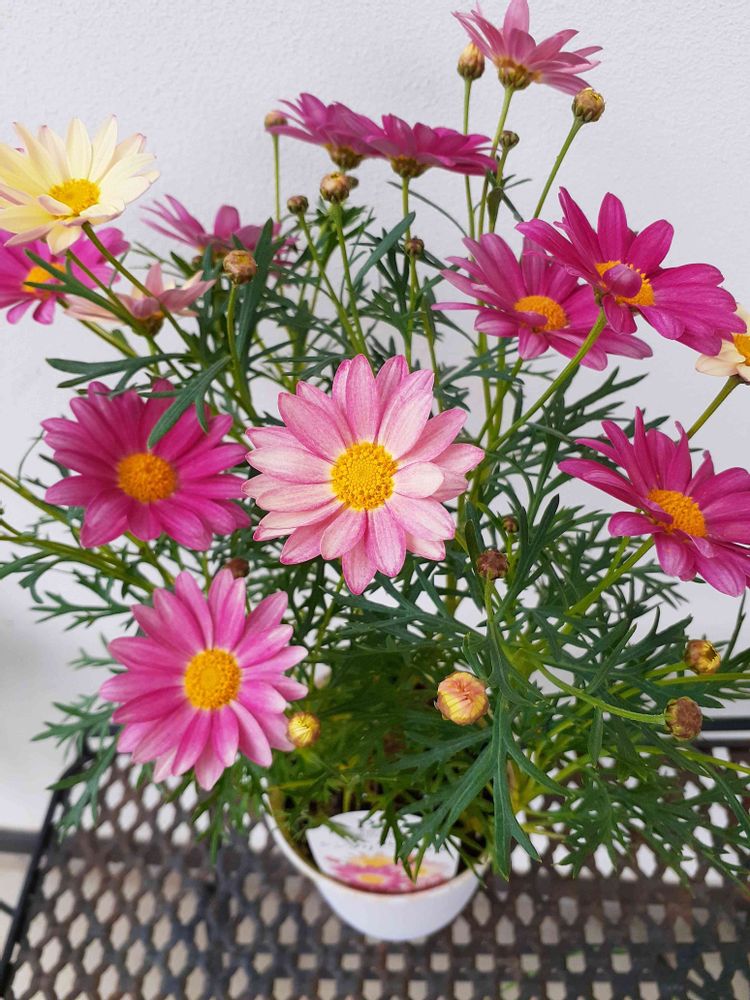 花色が変わるなんて とっても素敵です✧︎*。 たくさん咲いてくれるのもうれしいですね!! 魅力いっぱいのマーガレットさんですね( *ˊᗜˋ)ノꕤ*.゚