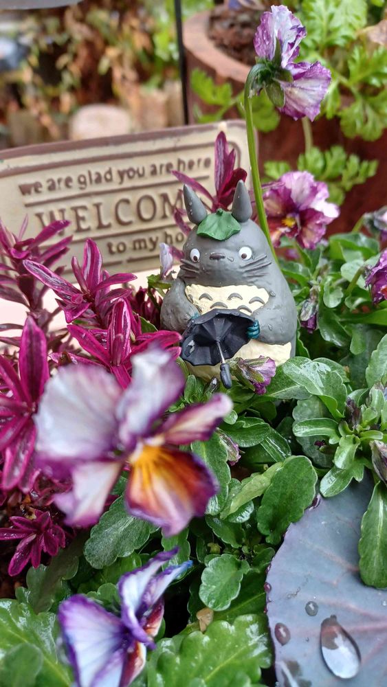 ビオラの蕾を雨から守ってくれるトトロ🌱
