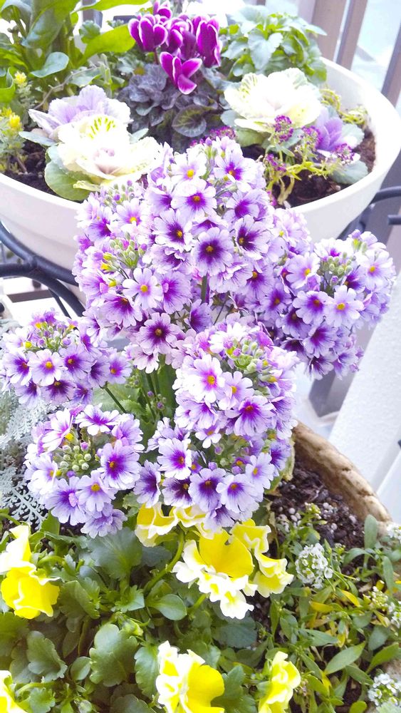 バルコニー/ベランダ,プリムラ マラコイデス マーブルスター,花のある暮らしの投稿画像
