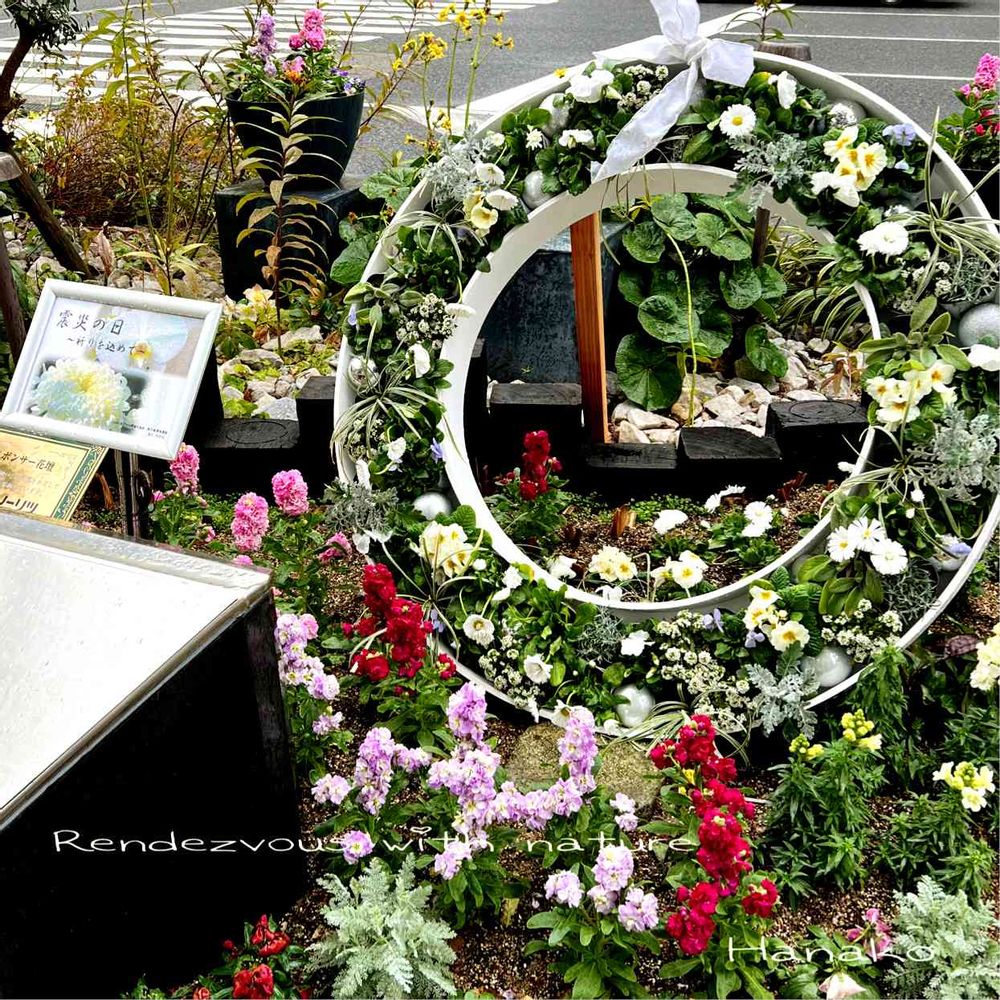 ハナコさんのお出かけ先,白いお花,神戸三宮スポンサー花壇の投稿画像