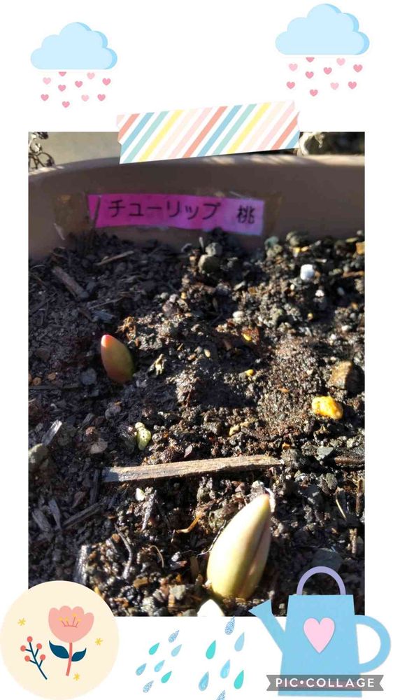 すごく分かりにくいですが、秋に球根を植えたチューリップの🌱が出て来ました🌷😄
