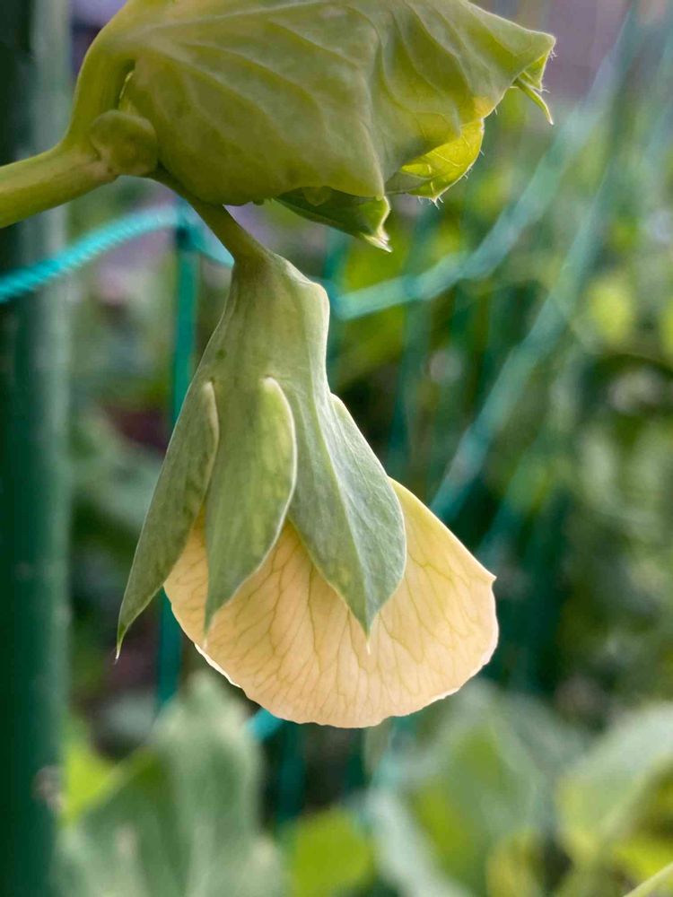 我が家は、スナップエンドウなんだけど、去年はすごく伸びて今頃花もありました。