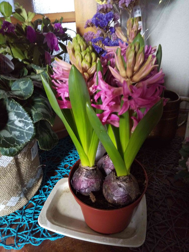 ヒヤシンスの横はシクラメンとクリローさんかな🎵🌸